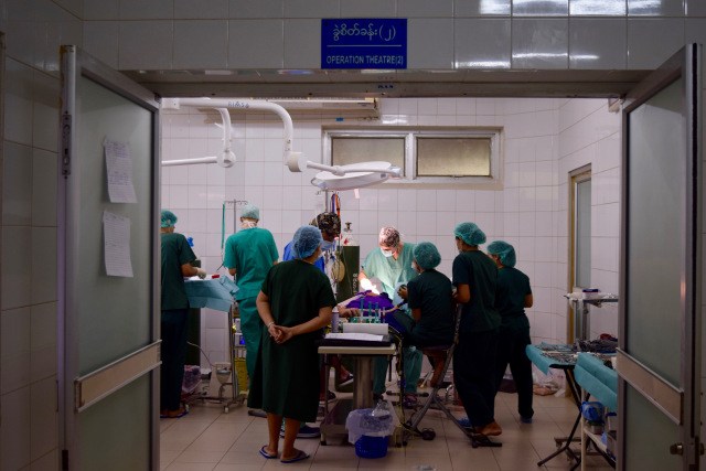 လူနာရှင်ယောက်ျားက သဘောတူကြောင်း လက်မှတ်ထိုး၍ လူနာကိုခွဲခန်းထဲတွင် ခွဲစိတ်နေကြခြင်းဖြစ်သည်။
