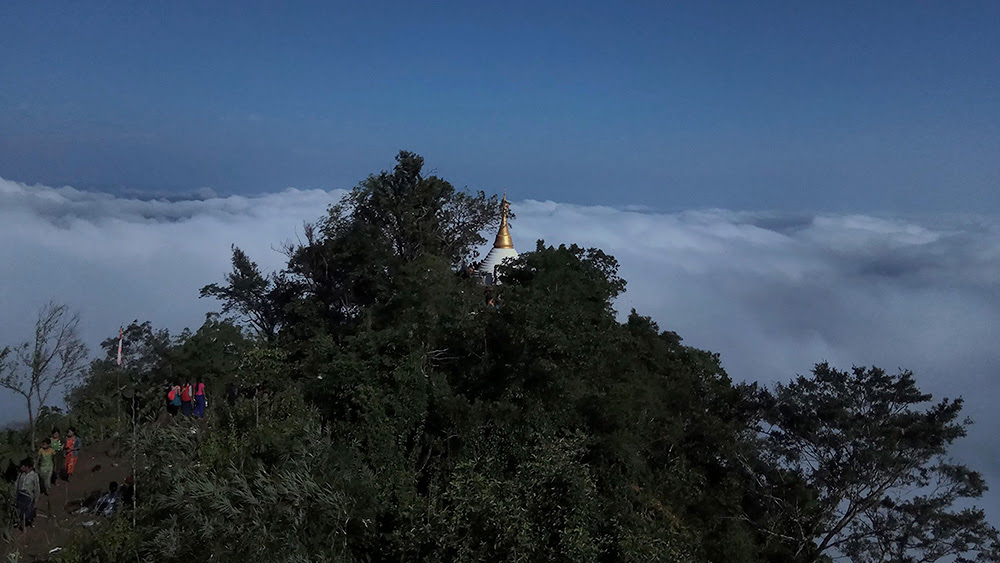 တောင်ထိပ်သို့ ရောက်သည်နှင့် လမ်းခရီးအတွင်း အင်္ကျီမဝတ်ချင်လောက်အောင် ပူအိုက်နေသော ခန္ဓာကိုယ်မှာ တောင်ပေါ်တွင် တိုက်ခတ်နေသော  မြောက်လေ၏ အထိတွေ့ကြောင့် ခိုက်ခိုက်တုန်အောင်ပင် ချမ်းလာပြီး လမ်းတစ်လျှောက် ပင်ပန်းနွမ်းနယ်ခဲ့သမျှ အမောပြေခဲ့ရလေသည်။ တောင်ထိပ်ဝန်းကျင်တွင် များပြားလှစွာ လူအုပ်ကြီးတို့မှာ ဘုရားဖူးကြ၊ ရှေးဟောင်းနှောင်းဖြစ် သမိုင်းအကြောင်းများကို လေ့လာမေးမြန်းကြ၊ အလှဓာတ်ပုံရိုက်ကြနှင့် စည်ကားနေသည်။ ဂီတာတီးပြီး အုပ်စုလိုက် သီချင်းဆိုနေသူ၊ ဆောင်းဘောက်စ်များဖွင့်ကာ ကနေကြသူများကိုလည်း တွေ့ရသည်။ တောင်ကုန်း တောင်စောင်းတစ်လျှောက် လူအပြည့် ခြေရာချင်း ထပ်နေပေသည်။ တစ်ချို့မှာ တောင်အောက် နတ်ရေကန်သို့ သွားကာ အသင့်ပါလာသော စားစရာများကို သွားစားကြပြီး၊ တစ်ချို့မှာလည်း တောင်ပေါ်တွင် ဝိုင်းဖွဲ့ကာ စားသောက် နေကြသည်။