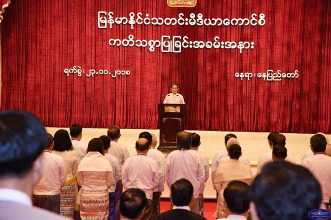 မြန်မာနိုင်ငံသတင်းမီဒီယာကောင်စီဝင်များအဖြစ် ရွေးကောက်တင်မြှောက်ခံရသူများက သမ္မတအိမ်တော်တွင် နိုဝင်ဘာ ၂၃ရက်က ကတိသစ္စာပြုစဉ် သမ္မတဦးဝင်းမြင့်က ထိုသို့ ပြောဆိုလိုက်ခြင်း ဖြစ်သည်။