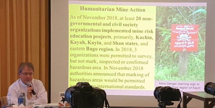 ၎င်းက “မြန်မာနိုင်ငံ မြေမြုပ်မိုင်း အသုံးပြုမှု အစီရင်ခံစာကို ယေဘုယျ သုံးသပ်ရမယ်ဆိုရင် ပျော်ပျော်ရွှင်ရွှင် မဖတ်နိုင်သေးတာ တွေ့ရမယ်။ မြန်မာနိုင်ငံမှာ တပ်မတော်က အသုံးပြုနေတယ်ဆိုတာ ထင်ရှားတယ်။ တပ်မတော်ကပဲ သုံးတာ မဟုတ်ပါဘူး။ လက်နက်ကိုင်အဖွဲ့တွေလည်း သုံးပါတယ်။ မြန်မာမှာ တပ်မတော်ကော၊ တိုင်းရင်းသားလက်နက်ကိုင်အဖွဲ့အစည်းတွေပါ သုံးနေ တယ်။”ဟု ပြောသည်။