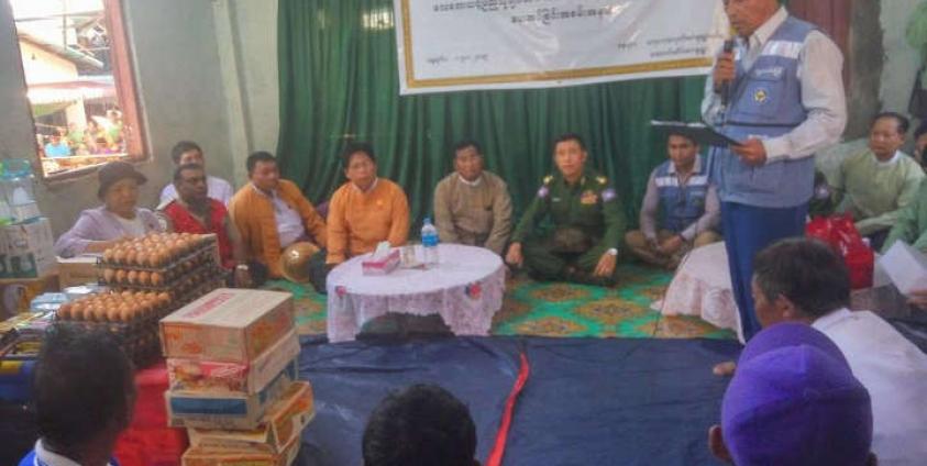 အဆိုပါထောက်ပံ့ပေးအပ်ပွဲအခမ်းအနားတွင် ဒုတိယဝန်ကြီး ဦးစိုးအောင်၊ အရှေ့တောင်တိုင်းစစ်ဌာနချုပ်တိုင်းမှူး ဗိုလ်ချုပ်မျိုးမိုးအောင်နှင့် မွန်ပြည်နယ်အစိုးရအဖွဲ့င် လူမှုရေးဝန်ကြီး ဒေါက်တာထိန်လင်းတို့က အားပေးနှစ်သိမ့်စကားများ ပြောကြားခဲ့ပြီး ဒုတိယဝန်ကြီးမှ ကယ်ဆယ်ရေးပစ္စည်းနှင့် အိမ်ဆောက်ပစ္စည်းဖိုးငွေ၊ ဆန်ရိက္ခာဖိုးငွေများ ပေးအပ်ခြင်းနှင့် အသက် ၈၅ နှစ်အထက် သက်ကြီးရွယ်အိုများအပါအဝင် မသန်စွမ်းနှင့် ကိုယ်ဝန်ဆောင်မိခင်များအား ထောက်ပံ့ငွေများ ပေးအပ်သည်။