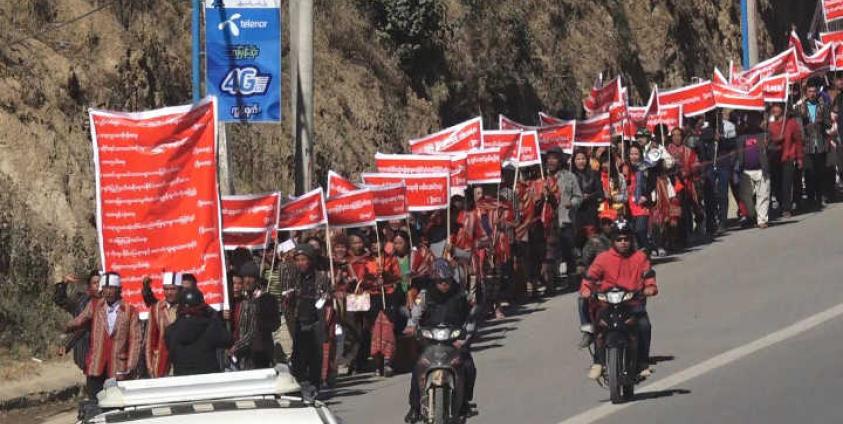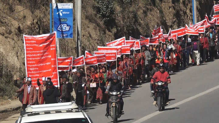အဆိုပါဆန္ဒပြထုတ်ဖော်မှုကို ဇန်နဝါရီ ၂၅ရက်နေ့ နံနက် ၉နာရီခန့်မှ ဟားခါး-ထန်တလန် လမ်းခွဲမှ စတင်လမ်းလျှောက်ပြီး ပြည်နယ်အစိုးရရုံးကို ဖြတ်ကျော်ကာ ဗိုလ်ချုပ်လမ်းမကြီးတစ်လျှောက် ဝမ္မသူမောင်ဘောလုံးကွင်းအထိ လမ်းလျှောက်ဆန္ဒပြခဲ့ကြကြောင်းသိရသည်။