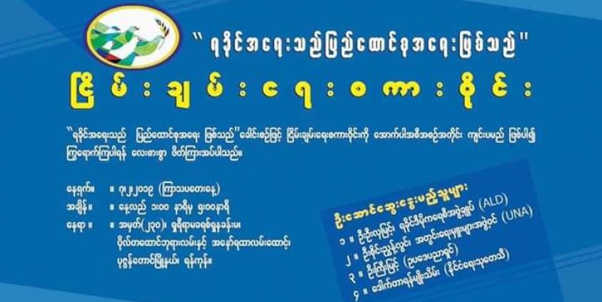 “ ရခိုင်အရေးသည် ပြည်ထောင်စုအရေးဖြစ်သည်” ခေါင်းစဉ်ဖြင့် ငြိမ်းချမ်းရေးစကားဝိုင်းကို ရန်ကုန်မြို့ ၊ ပုဇွန်တောင်မြို့နယ်၊ ဗိုလ်တထောင်ဘုရားလမ်းနှင့် အနော်ရထာလမ်းထောင့်၊ အမှတ် (၂၃၀)၊ ရှရီရာမခရစ်ရှနခန်းမတွင် ဖေဖော်ဝါရီ ၇ ရက်နေ့တွင် ကျင်းပပြုလုပ်သွားမည်ဟု သတင်းရရှိသည်။