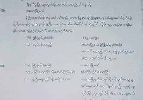 မြန်မာနိုင်ငံ ဖွံ့ဖြိုးရေးလုပ်ငန်းကော်မတီမှ ကလေးမြို့နယ် ဖွံ့ဖြိုးရေးလုပ်ငန်းများဆောင်ရွက်ရန်၊ ဖွံ့ဖြိုးရေးရန်ပုံငွေသုံးစွဲရန်၊ ဖွံ့ဖြိုးရေးရန်ပုံငွေ ထိန်းသိမ်းခြင်းနှင့်သုံးစွဲခြင်းဆိုင်ရာ ဥပဒေပုဒ်မ ၇၊ ပုဒ်မခွဲ (ဃ) အရ ခွင့်ပြုမိန့်ရရှိခဲ့ခြင်းဖြစ်သည်ဟုဆိုသည်။
