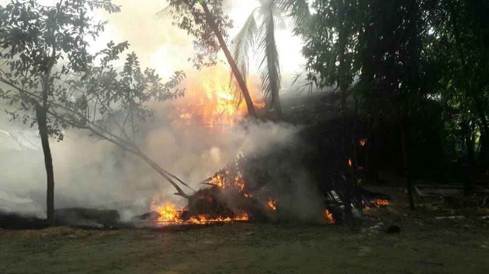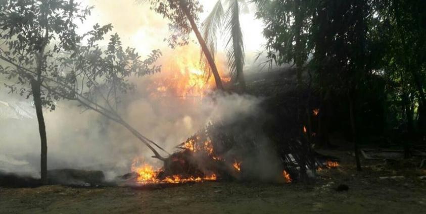 ဂွဆုံကျေးရွာတွင် မီးလောင်နေပုံ