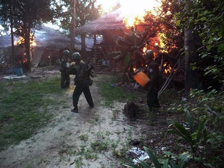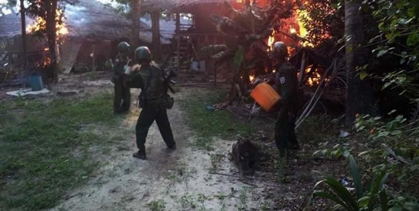 အကြမ်းဖက်သမားများက မီးရှို့ထားခဲ့သော အိမ်များကို တပ်မတော်သားများက ၀ုိင်းဝန်းငြိမ်းသတ်နေကြသည်ဟု ကက (ပြည်) ကဖော်ပြ