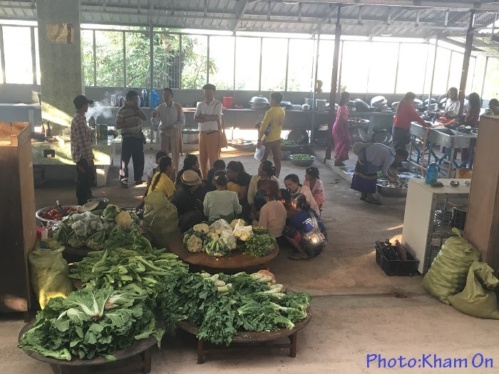ဖေဖော်ဝါရီ ၁၁ ရက် နေ့လည်က ကျောက်မဲမြို့ အောင်ဆုပန် ကျောင်းတိုက် နဲ့ ရွှေကျင်ကျောင်းတိုက်တွေမှာ ရောက်သွားတော့ အဲ့ကျောင်းမှာရှိတဲ့ ရွာသားတွေအများကြီးဟာ တချို့က စားဖို့ ထမင်း၊ ဟင်းတွေ ချက်ပြုတ်ပြင်ဆင် နေကြ သလို ဖြူစင်လွန်းတဲ့ကလေးလေးတွေကတော့ အုပ်စုလိုက် ဆော့ကစားနေကြတာတွေ့ရပါတယ်။