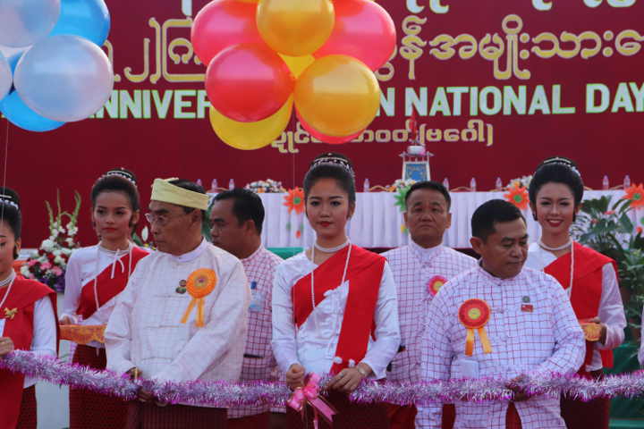 ပြည်ထောင်စုတိုင်းရင်းသားရေးရာဝန်ကြီး နိုင်သက်လွင်က ၇၂ ကြိမ်မြောက် မွန်အမျိုးသားနေ့ အခမ်းအနားအား ဖဲကြိုးဖြတ်ဖွင့်လှစ်ပေးစဉ်(MNA)