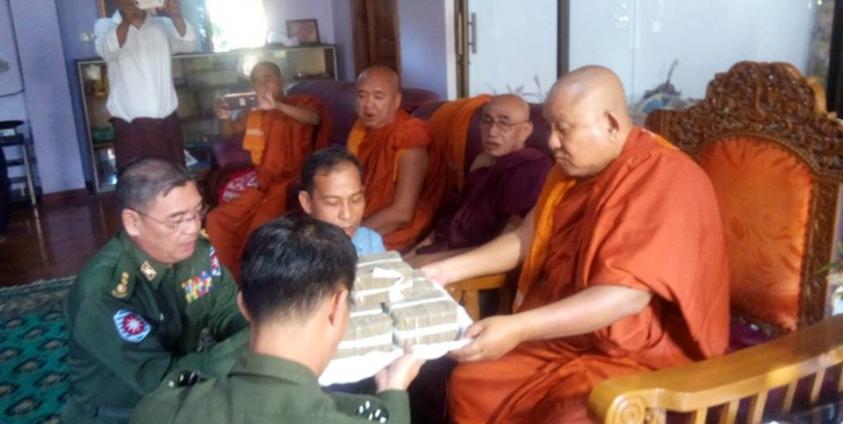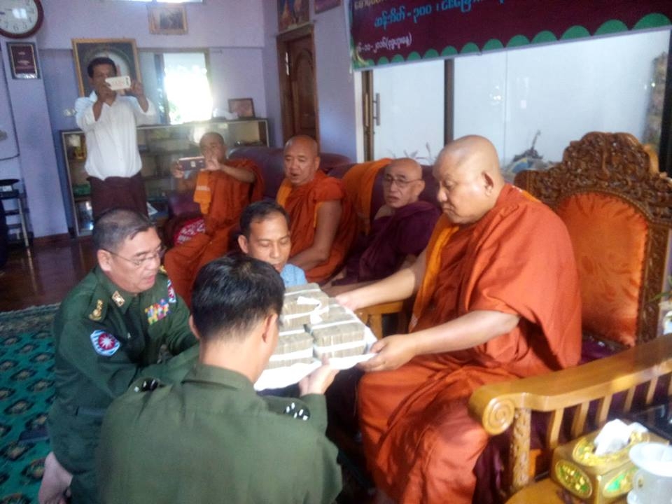 “မောင်တောဒေသမှာ လုံခြံုမှုမရှိတဲ့အတွက်ကြောင့် ဘေးကင်းလုံခြံုရာသို့ ရှောင်တိမ်းလာကြတဲ့ ဒေသခံတိုင်းရင်းသားတွေအတွက် ရန်ကုန်မြို့ရှိ အလိုတော်ပြည့် ကျောင်းတိုက်မှာ အလှူခံဌာန ဖွင့်ထားပါတယ်။ အဲ့ဒီက လက်ခံရရှိထားတဲ့ ငွေကျပ် သိန်း ၅၀ နဲ့ စစ်တွေနဲ့ သံတွဲ ဟိုတယ်ပိုင်ရှင် ဦးမောင်မောင်က ဆန်အိတ် ၃၀၀ နဲ့ ငါးခြောက် ပိသာ ၃၁၀ ကို မောင်တော ဒေသမှာ ရွပ်ရွပ်ချွံချွံ တိုက်ပွဲဝင်နေကြတဲ့ တပ်မတော်သားတွေနဲ့ စစ်ရှောင် တိုင်းရင်းသားတွေ အတွက် စေတနာထား လှူဒါန်းခြင်းဖြစ်ပါတယ်”ဟု အလိုတော်ပြည့်ဆရာတော်က မိန့်ကြားခဲ့သည်။