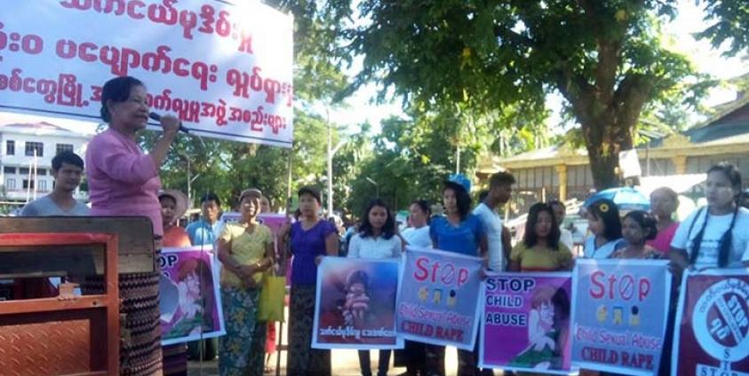 “ကျွန်မတို့ သက်ငယ်မုဒိမ်းမှု ပပျောက်ရေး အတွက် လှုပ်ရှားဆောင်ရွက်နိုင်ဖို့ အတွက် အရပ်ဘက်လူမှုအဖွဲ့အစည်း ၁၄ ဖွဲ့ပါ၀င်တဲ့ ကော်မတီတစ်ရပ်ဖွဲ့ပါတယ်။ ကျွန်မတို့ ကော်မတီအနေနဲ့ ဒီလှုပ်ရှားမှုကို လုပ်ရတဲ့ ရည်ရွယ်ချက်ကတော့ ကျွန်မတို့ ရခိုင်ပြည်နယ်မှာ ဒီနှစ်ရော၊ မနှစ်ကကော အသက် ၅ နှစ်အောက် ကလေးတွေကို ပစ်မှစ်ထားပြီး ကျူးလွန်တဲ့ သက်ငယ်မုဒိမ်းမှုတွေ များလာတဲ့ အတွက် ကျွန်မတို့ ဒီလှုပ်ရှားမှုကို လုပ်ရတာဖြစ်ပါတယ်”ဟု ရခိုင်အမျိုးသမီး ကွန်ယက်ဥက္ကဋ္ဌ ဒေါ်ညိုအေးက ပြောသည်။