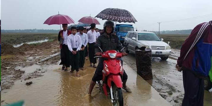 မောင်တောမြို့ပြင် သုံးမိုင်ရှိ မြတ်ပညာဘော်ဒါဆောင်မှ ကျောင်းသား ကျောင်းသူ ၇၀ ခန့်သည် ဆရာ ဆရာမများ၊ မိဘအုပ်ထိန်းသူများနှင့် အတူ ယနေ့ နံနက် ၇ နာရီမိနစ် ၄၀ခန့်က မောင်တောမြို့ အထက်တန်းကျောင်းသို့ စာမေးပွဲ ဖြေဆိုရန် ကား ၄ စီးဖြင့် လာရောက်စဉ် ကားလမ်း ပိတ်ဆို့ နေမှုကြောင့် မြို့ဝင်ဝတွင် နာရီဝက်ခန့် စောင့်ဆိုင်းနေခဲ့ကြရသည်ဟု ၎င်းတို့က ပြောသည်။
