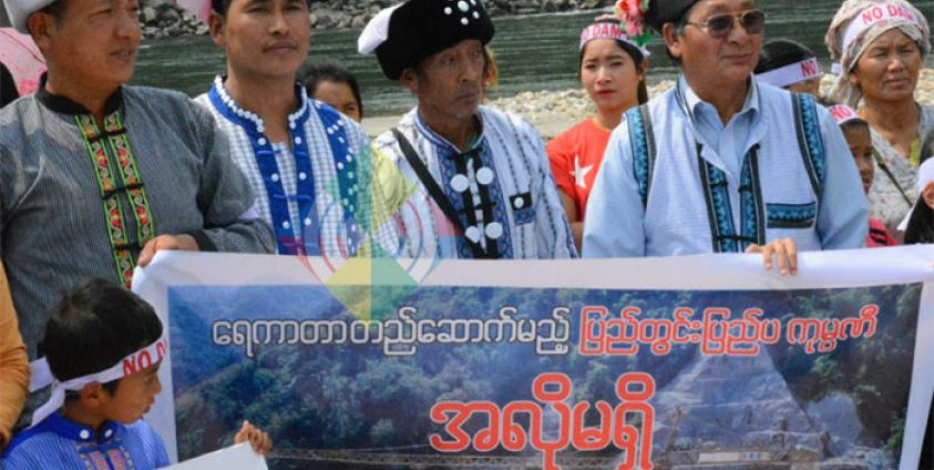 မေခ ခေါ် အင်မိုင်ခမြစ်နှင့် ငေါ့ချမ်းခမြစ်ကမ်းတစ်လျှောက် ရေအားလျှပ်စစ်စီမံကိန်း(၈)ခုကို တရုတ်အစိုးရပိုင် China Power Investment ကုမ္ပဏီမှ ဆောက်လုပ်နေခြင်း လုံးဝရပ်တန့်ပေးရန် ကချင်ပြည်နယ် ချီဖွေမြို့နယ် ရစ်လော်ဌာနေတိုင်းရင်းသားများက နိုင်ငံတကာ မြစ်ချောင်းအင်းအိုင်များနေ့ မတ်လ ၁၄ရက်မှာ ဆန္ဒပြတောင်းဆိုခဲ့ကြသည်။