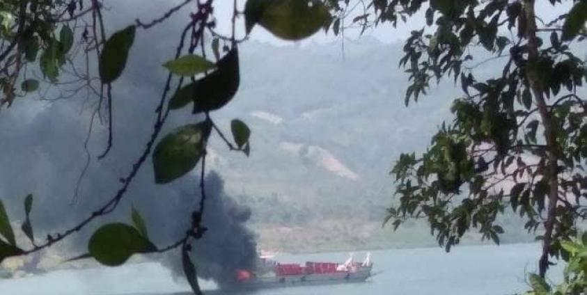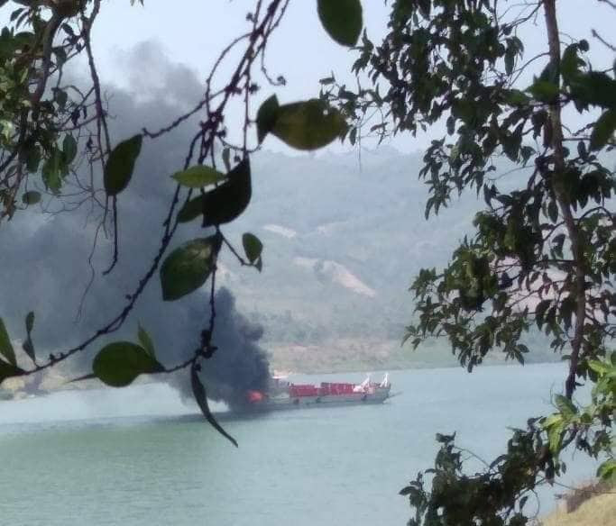 အဆိုပါဇက်သင်္ဘောမှာ ယခုအချိန်ထိ မီးများဆက်လက်လောင်နေသည်ဟု ကျောက်တော်ဒေသခံ ပြောသည်။