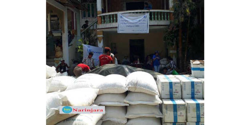 “ ဆန်က တစ်ယောက် တစ်လကို ၁၃ သစ် ၂ ဗူးနုန်း (၆ ပြည် ၃ ဗူး) နုန်းနဲ့ ကူညီတာ ဖြစ်ပါတယ်။ ဆန်အပါအဝင် ရိက္ခာတွေကို မိသားစုအလိုက် ခွဲဝေပေးလိုက်ပါတယ်” ဟု ဦးငလုံးချေက ပြောကြားသည်။