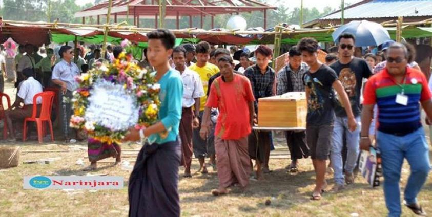 ရသေ့တောင်မြို့နယ် ရခိုင်အမျိုးသားပါတီ (ANP) အတွင်းရေးမှူး ဦးမောင်လှမြင့်က “ လူပေါင်း ၁၅၀၀ ကျော်၊ ၂၀၀၀ လောက်ရောက်ပါတယ်။ နယ်တွေကလည်း လာကြပါတယ်။ ဘယ်သူ့ကိုမှ ဖိတ်တာ မဟုတ်ဘူး။ ကိုယ့်အသိစိတ်နဲ့ ကိုယ်လာပြီး ပို့ဆောင်ကြာတာပါ။ သာမန် အရပ်သားတစ်ဦး ခုလိုပုံစံမျိုး သေသွားရတဲ့ အပေါ်မှာတော့ မခံချိမခံသာတော့ ဖြစ်ကြရပါတယ်” ဟု ပြောကြားသည်။