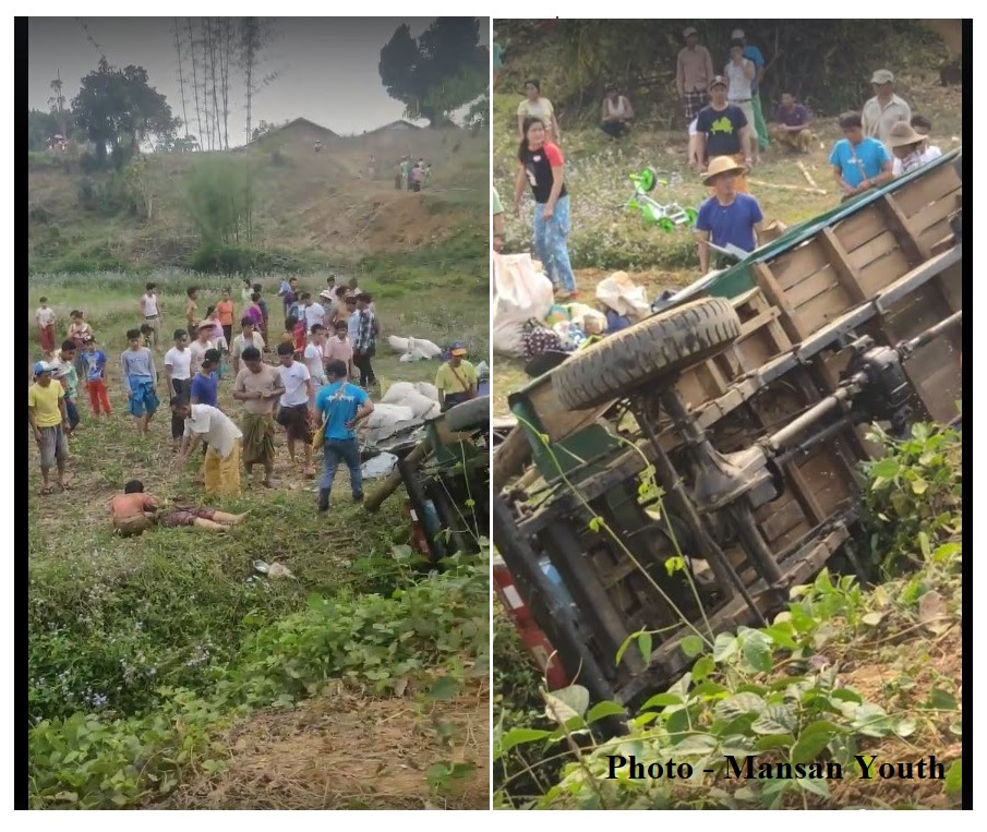 Photo Mansan Youth- လက်နက်ကြီးကျည်ကြောင့် စစ်ရှောင်ရဲ့ထော်လာဂျီတစီးတိမ်းမှောက် ယာဉ်မောင်းအပါအဝင် စစ်ရှောင် ၄ ဦးဒဏ်ရာရ