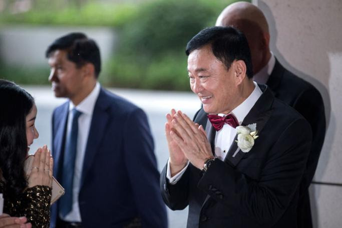 ၂၀၁၉ ခုနှစ်၊ မတ် ၂၂ ရက်က ဟောင်ကောင်ရှိ Rosewood Hong Kong ဟိုတယ်သို့ ထိုင်းနိုင်ငံရဲ့ ပြည်ပြေးဝန်ကြီးချုပ်ဟောင်း သက်ဆင်ရှင်နာဝတ်ထရာ ရောက်ရှိလာတာကို တွေ့မြင်ရစဉ်။ (ဓာတ်ပုံ - Jerome Favre/အီးပီအေ)