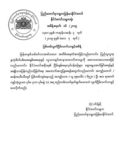 နိုင်ငံတော် သမ္မတရုံးမှ ငြိမ်းချမ်းရေးလုပ်ငန်းစဉ်များ ချောမွေ့အောင်မြင်စေရန် နှင့် အမျိုးသား ပြန်လည်သင့်မြတ်ရေး အထောက်အကူပြုစေရန် အတွက် ရည်ရွယ်ပြီး မြန်မာနှစ်သစ် ကူးကာလတွင် နိုင်ငံတော် သမ္မတရုံးက ပြစ်ဒဏ်လွတ်ငြိမ်းချမ်းသာခွင့် အမိန့်များ ထုတ်ပြန်ခဲ့သည်။