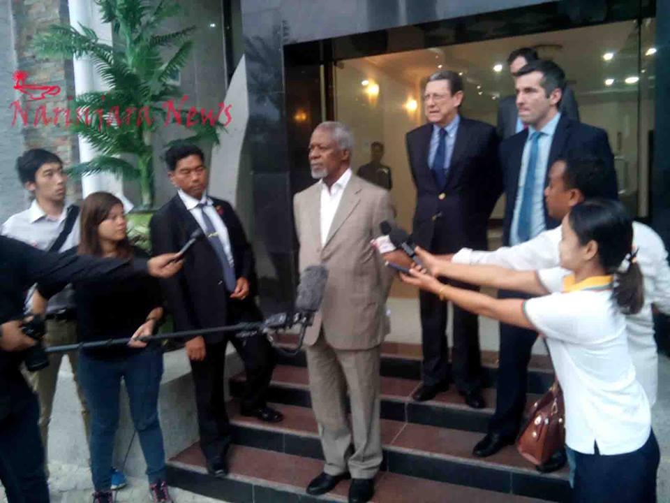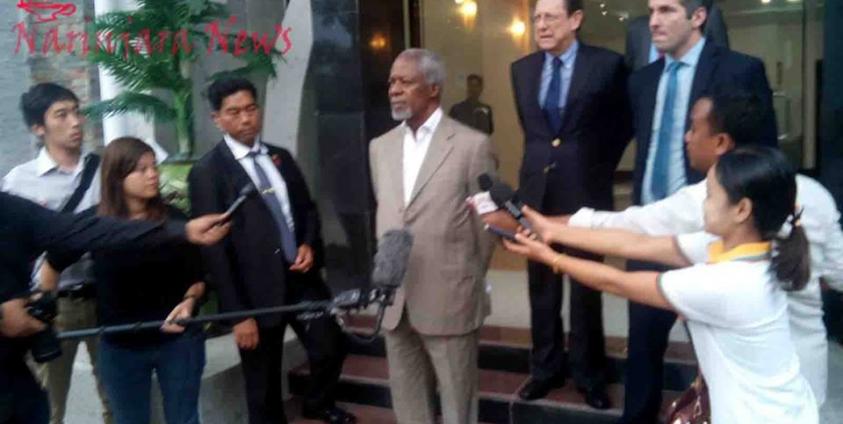 “ကျွန်တော်တို့ ကော်မရှင်အနေနဲ့ ဒီနေ့မှာ ရခိုင်ပြည်နယ်အစိုးရအဖွဲ့ ၀န်ကြီးချုပ်နဲ့ လူငယ်အဖွဲ့ အစည်းတွေနဲ့ တွေ့ဆုံ ဆွေးနွေးခဲ့ပါတယ်။ ဆွေးနွေးမှုတွေကတော့ နွေးထွေးပြီး ကောင်းမွန်ပါတယ်”ဟု ကိုဖီအာနန်က သတင်းထောက်များကို ပြောသည်။