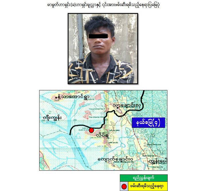 ၎င်းသည် ရခိုင်ပြည်နယ်၊ မောင်တောမြို့နယ်၊ နယ်မြေ(၄)၊ လိပ်ရ(မြောက်)ကျေးရွာ၌ မေလ ၂၃ ရက်နေ့ နံနက် ၁၀ နာရီ ၄၅ မိနစ်အချိန်ကဘင်္ဂလားဒေ့(ရှ်)နိုင်ငံ၊ ကော့ဘဇားခရိုင်၊ အူခီးယားမြို့နယ်၊ ပါလောင်ခါလီကျေးရွာ၊ ဆာမားကူဒုက္ခသည်စခန်းမှ တရားမဝင် နယ်စပ် ဖြတ်ကျော် ဝင်ရောက်လာခဲ့သည်ဟု သိရသည်။