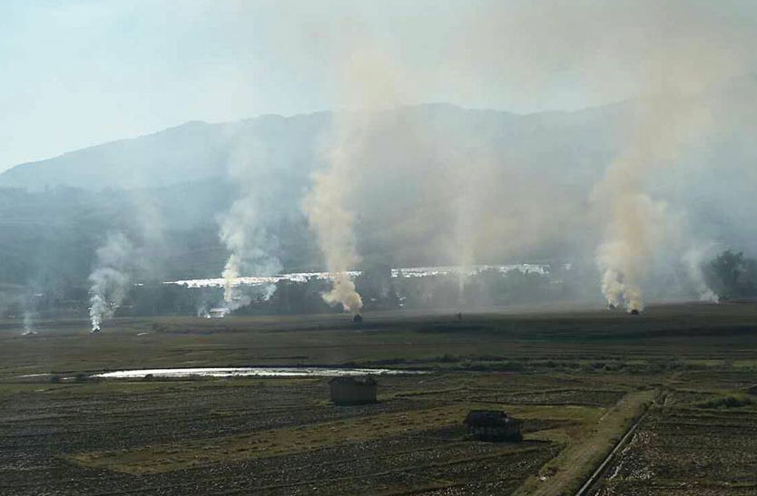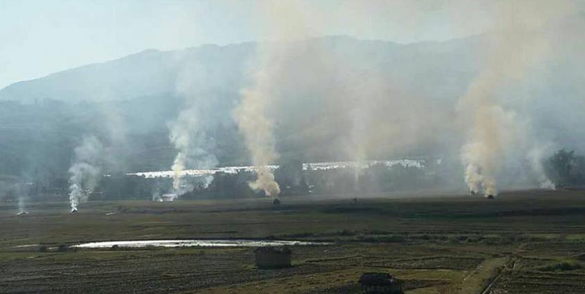 ယနေ့ မနက်ပိုင်းမှာတော့ လယ်တောရှိ ကောက်ရိတ်ထားပြီးသား ကောက်ပုံများကို လိုက်လံမီးရှို့နေသည်ကို ထပ်မံ တွေ့နေရပါသည်။