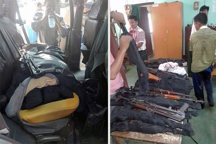 ၎င်းလက်နက်များကို ကားထိုင်ခုံအောက်နေရာများတွင် သိုဝှက်သယ်ဆောင်လာခဲ့ကြောင်း၊ AK 47 အမျိုးအစား သေနတ် ၁၉ လက် ကျည်တောင့် ၃၀၀ ကျော် နှင့် အတူ ငွေသား ကျပ်သိန်း ၃၆၀ ကို ရှာဖွေသိမ်းဆည်းရမိခဲ့ကြောင်း သတင်းတွင် ဆက်လက် ဖော်ပြသည်။