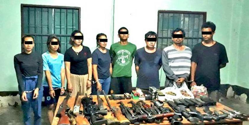 ဖမ်းဆီးရမိသည့် လက်နက် ခဲယမ်းများမှာ ခြောက်လုံးပြူး သေနတ် ၂ လက်၊ 9 MM ပစ္စတို သေနတ် ၃လက်၊ AK 47 သေနတ် ၃ လက်၊ M16 သေနတ် ၂ လက်၊ ၁၂ ဗို့ တလုံးထိုး သေနတ် ၃ လက်၊ M12 တလက်၊ M22 ရိုင်ဖယ် တလက် နှင့် ကျည် မျိုးစုံ စုစုပေါင်း (၁၉၅၀) တောင့် သိမ်းဆည်းရမိကြောင်း ထုတ်ပြန် ချက်တွင် ဖော်ပြထားသည်။