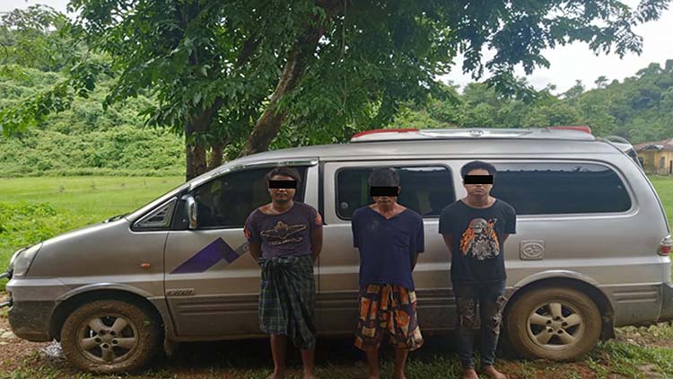စေတီနန်းကျေးရွာမှ ယာဉ်မောင်း ကျော်မြင့်၊ ယိုးတရုတ်ကျေးရွာနေ မင်းနိုင်ဌေးနှင့် မောင်ဦးငြိမ်းဝေ တို့စီးနှင်းလာသည့်ကားအား ကျောက်တော်မြို့နယ်၊ ကန်စောက်ကျေးရွာအနီးတွင် လုံခြုံရေးတပ်ဖွဲ့ဝင်များက စစ်ဆေးခဲ့သည်။ ယာဉ်ပေါ်တွင် သေနတ်တစ်လက်၊ ကျည်ဆန်များ၊ ဓားတစ်ချောင်း၊ စိတ်ကြွရူးသွပ်ဆေးပြား ၂၀၀၀ ပြားနှင့် ဖုန်း (၅)လုံးတို့နှင့်အတူ ၎င်းတို့ကိုဖမ်းဆီးရမိခဲ့သည်ဟု တပ်မတော်က ဇူလိုင်လ ၁၆ ရက်နေ့တွင် သတင်းထုတ်ပြန်သည်။