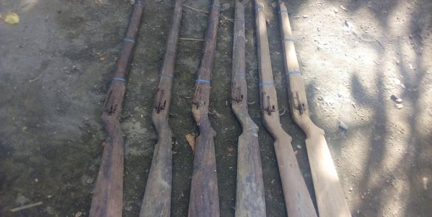 “တပ်မ ၂၂ လက်အောက်ခံတပ်ရင်း ဒီလ ၁၈ရက်နေ့က ရွာထဲမှာ အိမ်ထောင်စု စာရင်းစစ်ဆေးတယ်။ အိမ်တိုင်း လိုလို ဝင်ရောက်စစ်ဆေးတာပါ။ အဲလိုဝင်ရောက်စစ်ဆေးတဲ့ အချိန်မှာတွေ့တာပါ။ အဲဒီသေနတ်တွေကလည်း ၂ဝ၁၂ တုန်းက လုပ်ထားတာကြာပြီ။  ရခိုင်အရေးခင်းတုန်းက လုပ်ထားတာလို့ သူတို့ကပြောပါတယ်” ဟု ရာအိမ်မှူး ဦးမောင်ဟန်နုက ပြောသည်။