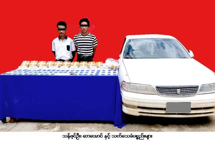 ထိုရှာဖွေ စစ်ဆေးရာတွင် မိန်ပြိန်းကျေးရွာတွင် နေသူ ယာဉ်မောင်း မောင်သန့်ဇင်ဦး(ခ) သားငယ် နှင့် အတူ အသက် ၂၆ နှစ် ဆာအောင်(ခ) အိုက်အောင် မောင်းနှင်လာသည့် ကားအတွင်း စိတ်ကြွဆေးပြား ပေါင်း ၉ သောင်း ( ကာလ ပေါက်စျေး တန်ဖိုးငွေ ကျပ်သိန်းပေါင်း ၁၈၀၀ ၀န်းကျင်) နှင့် လက်ကိုင်ဖုန်း ၁ လုံး တို့အား သိမ်းဆည်းရမိကြောင်း မူးယစ်ရဲတပ်ဖွဲ့ ထုတ်ပြန်ချက် အရ သိရသည်။