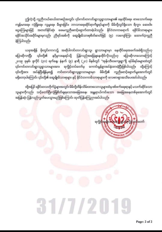ကင်းတလင်းရွာသားများ၏ နေထိုင်ရေး၊ စားသောက်ရေး၊ ကျန်းမာရေး၊ လုံခြုံရေး၊ လူမှုရေး၊ မီးဖွားခြင်း ဘာသာရေးဆိုင်ရာ ကိစ္စရပ်များ မိမိတို့တွင်ရှိသော ရိက္ခာ၊ ဆေးဝါး ငွေကြေးများဖြင့် အတတ်နိုင်ဆုံး ကူညီစောင့်ရှောက်ထားပြီး နိုင်ငံတကာရောက် ရခိုင်မိသားစုများ၊ ရခိုင်အသိုင်းအဝိုင်းများမှလည်း မိသားစုစိတ်ဓာတ်ဖြင့် (၅)လကျော်ကြာ ထောက်ပံ့ကူညီခဲ့ကြောင်း ထုတ်ပြန်ချက်ထဲတွင် ဖော်ပြထားသည်။