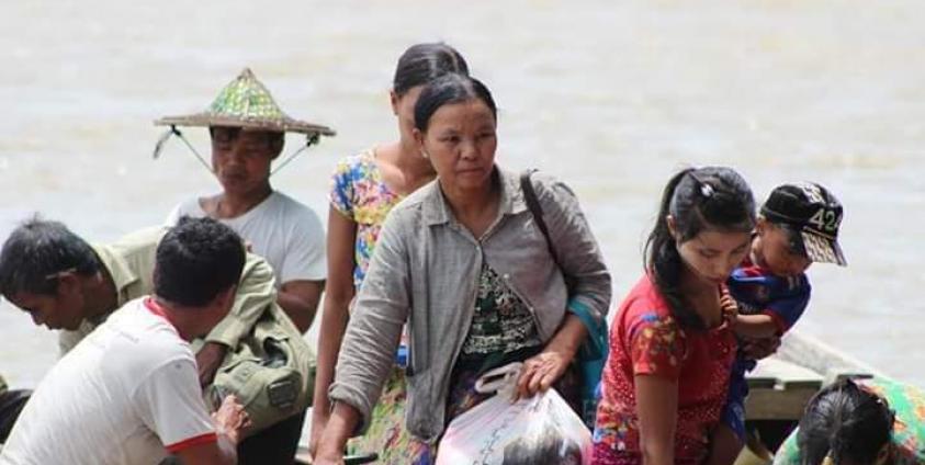 (ကုလားမတောင်ကျေးရွာကို စွန့်ခွာထွက်ပြေးလာကြသည့် ရွာသားများကို တွေ့ရစဉ်/ ဓာတ်ပုံ- သဘာဝနဒီ)