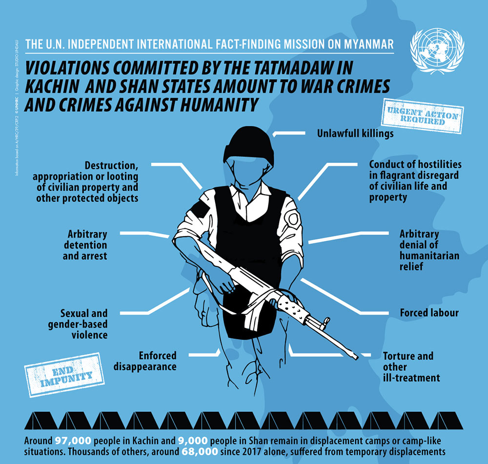 မြန်မာစစ်တပ်နှင့် ဆက်နွယ်သော စီးပွားရေး လုပ်ငန်းကုမ္ပဏီများကို ပစ်မှတ်ထား ပိတ်ဆို့မှုများ ပြုလုပ်ရန်နှင့် လက်နက်ရောင်းချမှုကို ပိတ်ဆို့ရန် မြန်မာနိုင်ငံဆိုင်ရာ ကုလသမဂ္ဂအချက်အလက်ရှာဖွေရေးကော်မရှင် FFM က သြဂုတ် ၅ ရက်နေ့ တောင်းဆိုလိုက်သည်