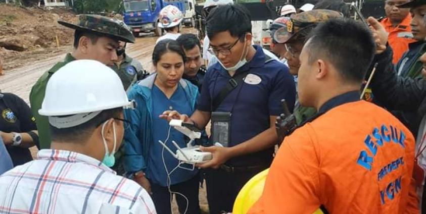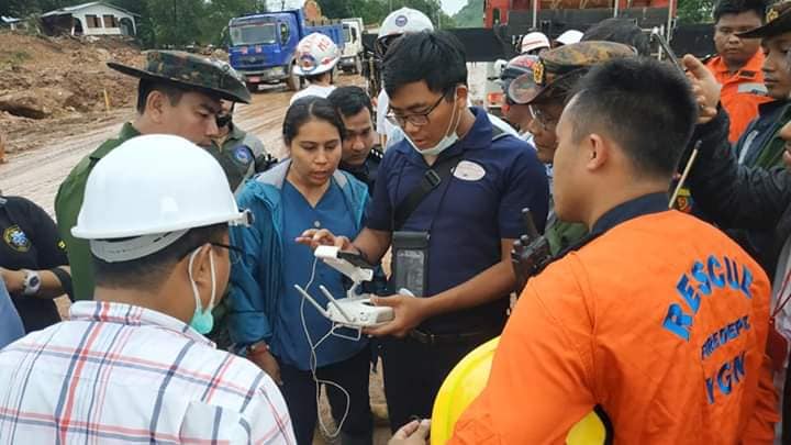 Photo- ဒရုန်းစက်ဖြင့် တောင်မြေပြိုမှုလေ့လာနေစဉ်(မိကွန်ချမ်း)
