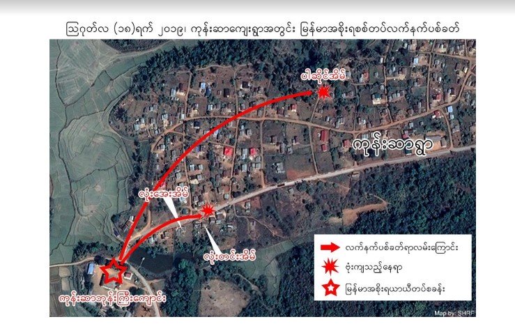 အစိုးရစစ်တပ်ပစ်ခတ်သော လက်နက်ကြီးများသည် ၆၀ မမ လက်နက်ကြီးများဖြင့် ပစ်ခတ်ခဲ့ခြင်းဖြစ်ကြောင်း ၊ ၄င်း ရွာသားသေဆုံးမှုနှင့်ပတ်သက်ပြီး သတင်းမထွက်အောင်လည်း ရွာအကြီးအကဲများအားပြောကြားကြောင်း SHRF ကဆိုပါသည်။