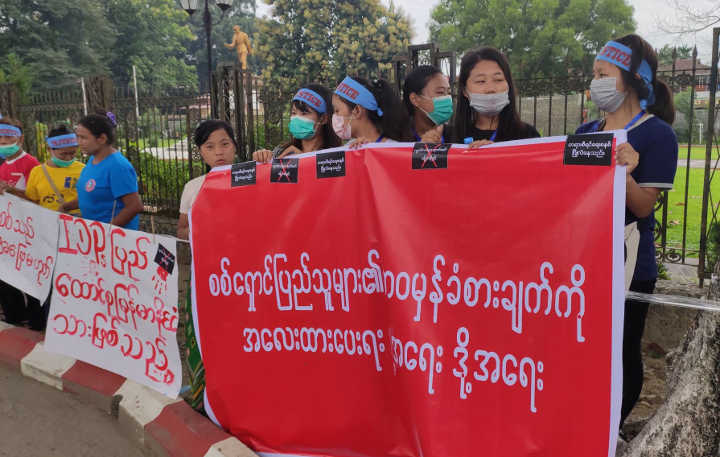 ဆန္ဒဖော်ထုတ်သော လူငယ်များက ‘IDP များ၏ ဘဝမှန်တေးသရုပ်ဖော်ခြင်းအား ပြစ်ဒဏ်ပေးခြင်း မလိုမရှိ..အလိုမရှိ၊ စစ်ကိုမုန်းသည် ၊ ပြည်သူသည် စစ်၏ ဓားစာခံမဟုတ်၊ လွတ်လပ်စွာထုတ်ဖော်ခွင့်ရရှိရေး၊ မတရားသဖြင့်တရားစီရင်သော တရားသူကြီး အလိုမရှိ’ စသည့် စာတမ်းများကို ကိုင်ဆောင်ကာ လမ်းဘေးတွင် ကြွေးကြော်ခဲ့ကြပါသည်။