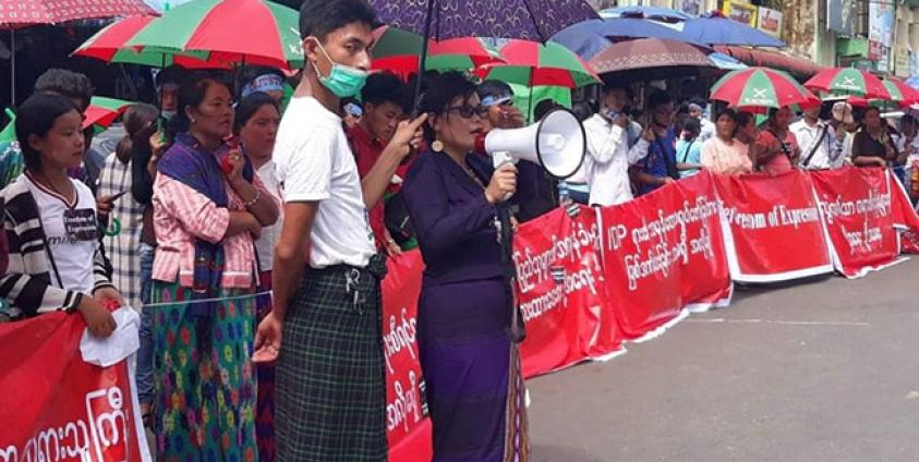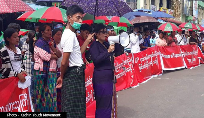 လွတ်လပ်စွာ ထုတ်ဖော်ပြောဆိုခွင့်နှင့် တရားမျှတမှုရှိသည့် တရားစီရင်ရေးစနစ်ကို ဖော်ဆောင်ပေးရန် ကချင်လူငယ်များနှင့် စစ်ဘေးရှောင်များက ဆန္ဒထုတ်ဖော် တောင်းဆိုလိုက်သည်။