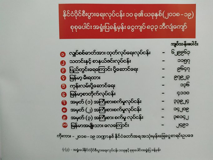 အရှုံးပေါ်နေသော နိုင်ငံပိုင်စီးပွားရေးလုပ်ငန်းများမှ ၂၀၁၈ - ၁၉ ဘဏ္ဍာနှစ်တွင် ဖြည့်စွက်ဘဏ္ဍာငွေ တောင်းခံခဲ့ကြပြီး ကျပ်ငွေ ၁၄၃၂.၃၈၂ ဘီလျံ( ကန်ဒေါ်လာ ၁ ဘီလျံ) အထိ တောင်းခံခဲ့ခြင်းဖြစ်ကာ စီမံကိန်းနှင့်ဘဏ္ဍာရေးဝန်ကြီးဌာနနှင့် ပြည်ထောင်စုလွှတ်တော် ပြည်သူ့ငွေစာရင်းပူးပေါင်းကော်မတီ၏ စိစစ်ပူးပေါင်းရေးအဖွဲ့ ၂၀ က စီစစ်ပြီး ပြည်ထောင်စုလွှတ်တော်မှာ မေလ နောက်ဆုံးပတ်က တင်ပြ တောင်းခံထားကြသေးသည်။