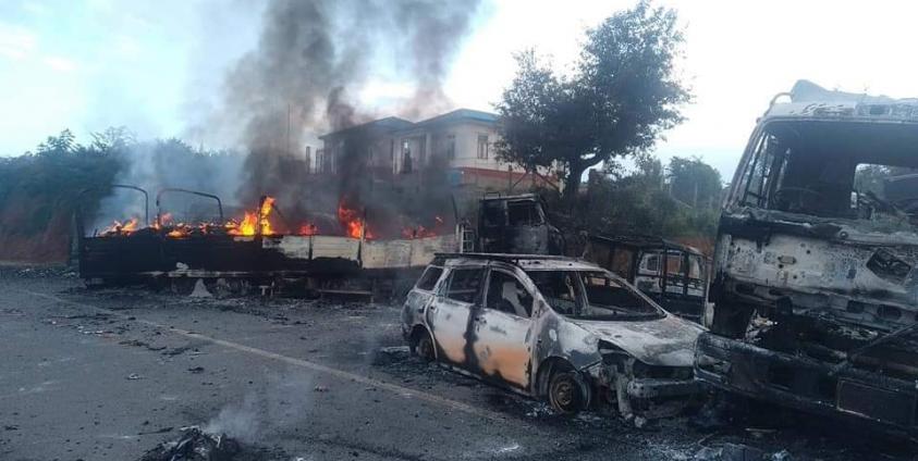 သျှမ်းပြည်မြောက်ပိုင်းတွင် ဩဂုတ်လ ၁၅ ရက်နေ့မှစတင်သည့် မြောက်ပိုင်းညီနောင်မဟာမိတ် ၃ ဖွဲ့နှင့် အစိုးရတပ်မတော်ကြားတိုက်ပွဲကြောင့် ဒေသခံလူထု၏ ပြည်ထောင်စုလမ်းမတလျှောက်သွားလာသည့် မော်တော်ယာဉ်များ ၂၂ စီးထက်မနည်း မီးရှို့ဖျက်ဆီးခံရကြောင်း လူ့အခွင့်အရေးစောင့်ကြည့်ရေးအဖွဲ့များက ကြေငြာချက်ထုတ်ပြန်ခဲ့သည်။