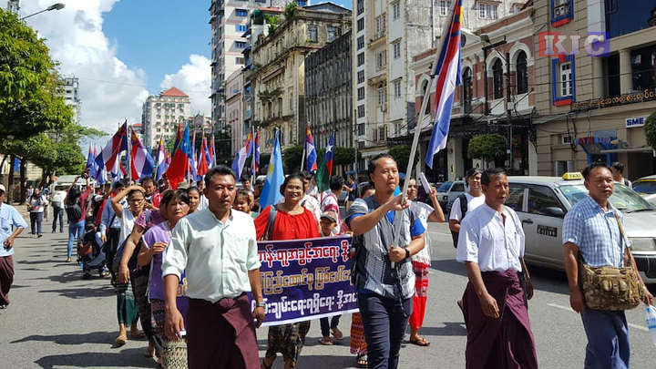 ကရင်အမျိုးသား အာဇာနည်နေ့ ကျင်းပသည့်အတွက် အစိုးရက တရားစွဲခံရသည့် နော်အုန်းလှနှင့် ကရင်လူငယ် ၂ ဦး အမှုကို ယနေ့ကျောက်တံတားမြို့နယ် တရားရုံးတွင် အမိန့်ချမည့် ရုံးချိန်းသို့ ကရင်တိုင်းရင်းသား ပြည်သူများက ယနေ့နံနက် ၉ နာရီခွဲတွင် ရန်ကုန်မြို့လယ်၊ မဟာဗန္ဓုလပန်းခြံမှ ပန်းဆိုးတန်းလမ်းမတိုင်း တရားရုံးသို့ ငြိမ်းချမ်းစွာ ချီတက် လမ်းလျှောက်ဝန်းရံခဲ့ကြသည်။