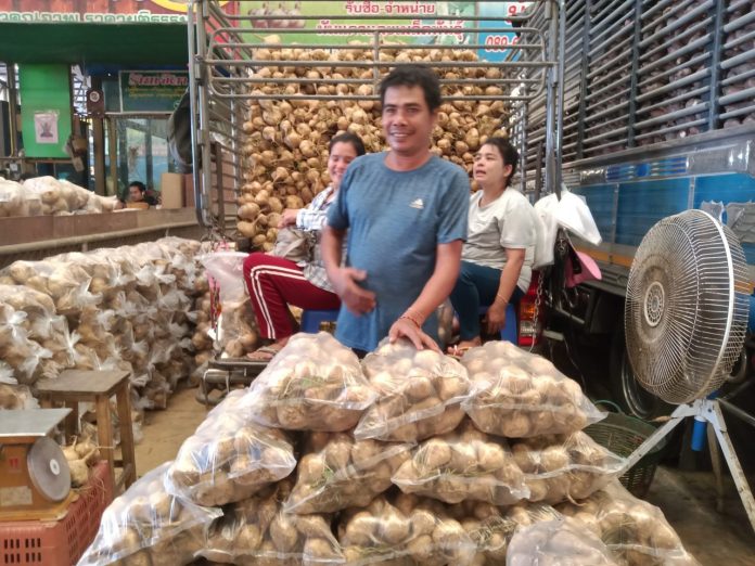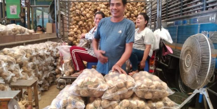 ဘန်ကောက်မြို့ က ဟင်ဟင်းသီးဟင်းရွက် ဈေးတစ်ခုအလုပ်လုပ်ကိုင်နေသောမြန်မာ ရွေ့ပြောင်းလုပ်သားများ