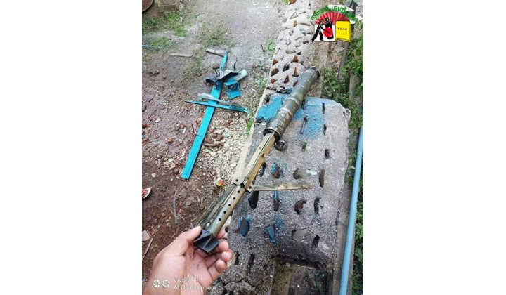 Photo by SHAN/ ယနေ့မနက်ပိုင်းက သိန္နီ တွင်ပစ်ခတ်မှုဖြစ်ပွားရာ လူနေအိမ်အပေါ်လက်နက်ကြီးကျည်များကျရောက်