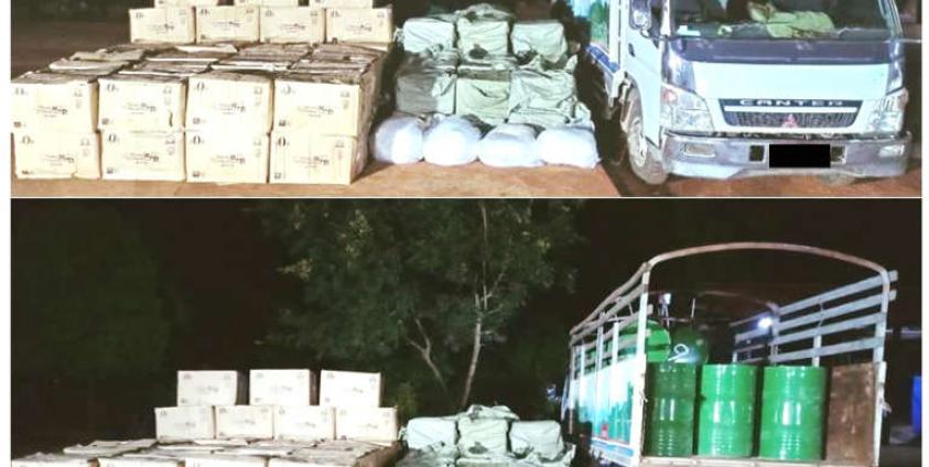 မူဆယ်-လာရှိုးကားလမ်းပေါ်တွင် ရပ်တန့်ထားသည့် CANTER အမျိုးအစား ၆ ဘီးမော်တော်ယာဉ်ကို မသင်္ကာသဖြင့် မူးယစ်ရဲတပ်ဖွဲ့မှ သားရောက် စစ်ဆေးရာ ထိန်းချုပ် ဓာတုပစ္စည်းများဖြစ်သည့် တော်လူအင်း ၃၆၀၀ လီတာ (ဒေသ ကာလပေါက်ဈေး ကျပ်ငွေ ၄၅၀)သိန်း၊1 Phenyl 2 Propanone ၃၀၀ လီတာ(ဒေသကာလပေါက်ဈေး ကျပ်ငွေ ၁၈၀ သိန်း)၊ စက္ကူဂျပ်ဖာအတွင်း ပလတ်စတစ် အိတ်ဖြင့်ထည့်ထားသည့် ကဖင်းအလေးချိန် ၉၇၅ ကီလို(ဒေသကာလပေါက်ဈေး ကျပ်ငွေ ၇၃၁ သိန်း)တို့ကို သိမ်းဆည်းရမိကြောင်းသိရသည်။