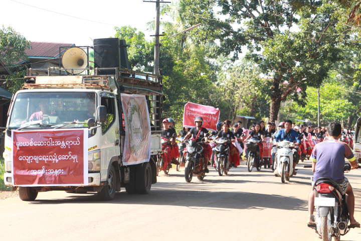 “မနက်ပိုင်းမှာ လူငယ်အယောက် ၂၀၀ လောက် မြို့ကိုဆိုင်ကယ်နဲ့ တစ်ပတ်ပတ်ကြတယ်၊ အဲဒီပိုစတာတွေကိုင်ပြီးတော့ လှည့်လည်နှိုးဆောင်ကြတာပေါ့” ဟု မဂဒူးမွန်ဒေသဖွံ့ဖြိုးရေး အရပ်ဖက်လူမှုအဖွဲ့အစည်း ဒါရိုက်တာ နိုင်ဇဲ့ဟာန်က ပြောသည်။