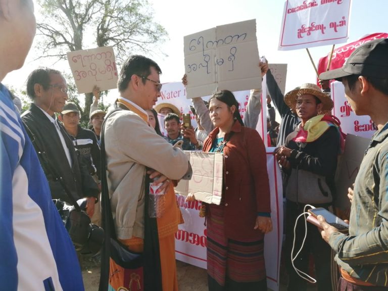 ထိုကြွေးကြော်မှုသည် နိုဝင်ဘာ ၂၅ ရက် မနက်ပိုင်း သျှမ်းပြည် မြောက်ပိုင်း သီပေါမြို့ နယ် အတွင်း နမ္မတူမြစ်ပေါ် တည်ဆောက်မည့် အထက်ရဲရွာ ရေကာတာ ကြောင့် ပြောင်းရွှေ့ခံရမည့် တာလုံကျေးရွာ ဒေသခံ ၃၀၀ကျော် က ဆိုင်းဘုတ်ကိုယ်စီ ကိုင်ကာ ကန့်ကွက် ဆန္ဒပြသည်။