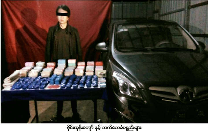 အဆိုပါ ဖမ်းဆီးရမိသည့် မူးယစ်ဆေးဝါးများမှာ စိတ်ကြွရူးသွပ်ဆေးပြား ၃၆၀၀၀ပြား( ကာလပေါက်ဈေး ၃၆၀သိန်း)၊ ရောင်စုံ ဆပ်ပြာခွက် များဖြင့် ထည့်ထားသည့် ဘိန်းဖြူ အလေးချိန် ၇၂၆ ဂရမ် (ဒေသ ပေါက်ဈေး တန်ဖိုးငွေကျပ် ၁၀၈.၉သိန်း) နှင့် လက်ကိုင်ဖုန်း ၁လုံး တို့ကို သိမ်းဆည်းရမိကြောင်း ထုတ်ပြန်ချက်တွင် ရေးသားထားသည်။