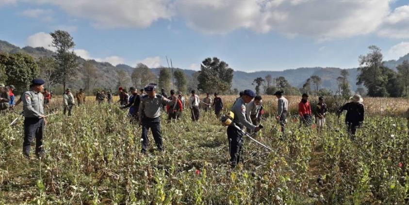 မြန်မာနိုင်ငံ မူးယစ်ရဲတပ်ဖွဲ့ သည် သျှမ်းပြည်တောင်ပိုင်း တောင်ကြီးခရိုင်အတွင်း အောက်တိုဘာ ၂၉ ရက်နေ့မှ စတင်ကာ ဒီဇင်ဘာ ၁၂ရက်နေ့ထိ ဘိန်းစိုက်ခင်း ဧက ၁၁၀၀ ကျော် ဖျက်ဆီးပြီးကြောင်း ယနေ့ ရက်စွဲဖြင့် မူးယစ်ရဲတပ်ဖွဲ့ က ထုတ်ပြန်ကြေညာလိုက်သည်။