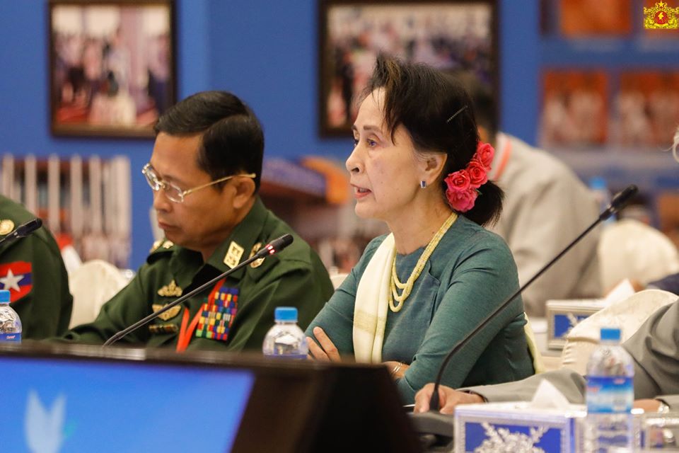 “နိုင်ငံရေး စားပွဲဝိုင်းတွေမှာ ဝင်ထိုင်ပြီး ကိုယ့်ရဲ့ လိုအင် ဆန္ဒ ကိုယ့်ရဲ့ လိုလားချက် တွေကို ပွင့်ပွင့်လင်းလင်း ပြောပြပြီး၊ ကျမတို့ရဲ့ ဆွေးနွေးဖို့ လိုပါတယ်။ ဒီလို ဆွေးနွေးနိုင်ဖို့ အတွက် လည်း ကျမတို့ ငြိမ်းချမ်းရေး တံခါးဖွင့် ထားပေးတာဖြစ်ပါတယ်” ဟု လည်း နိုင်ငံတော် အတိုင်ပင်ခံ ပုဂ္ဂိုလ် က ထပ်လောင်း ပြောကြားလိုက်သည်။