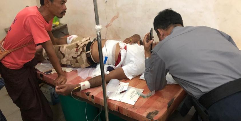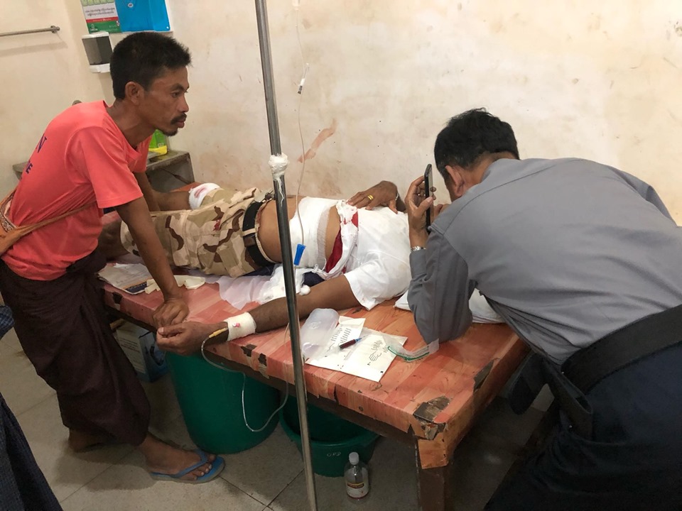 Photo- သေနတ်အပစ်ခံရသူ ဦးဇော်မင်း ဆေးရုံ၌ တက်ရောက်ကုသခံနေစဉ်(Aung Naing Win)