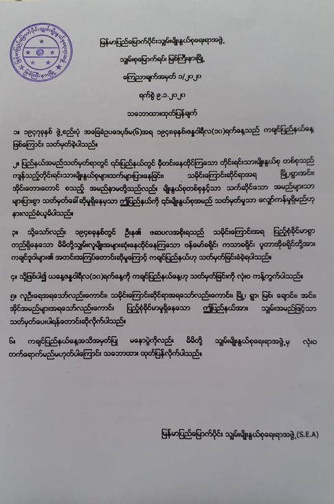 အဆိုပါ သဘောထားကြေညာချက်ကို ဇန်နဝါရီ ၉ ရက်နေ့က ထုတ်ပြန်ခဲ့ခြင်းဖြစ်သည် ။